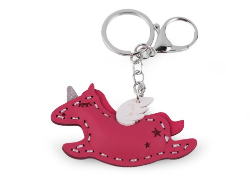 Prívesok jednorožca alebo slona s krídlom je vyrobený z eko kože, vďaka tomu má malú hmotnosť. Je ozdobený štepovaním, s obľubou sa nosí na kľúčoch, batohoch, taškách aj kabelkách. Je zavesený na retiazke, ku ktorej je pripojená otváracia karabína a plochý krúžok na kľúče. Prívesok je jednostranný, zadná strana je len preštepovaná.