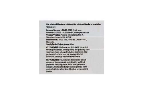 Balenie kľúčenky je jednoduché, ale účelné, s kartónovou etiketou v hornej časti, ktorá nesie logo Disney Stitch v modrých odtieňoch a nápis „Torch Key Clip“. Tento dizajn podčiarkuje oficiálny licenčný charakter produktu a zároveň uľahčuje jeho vystavenie v predajni. Celkovo ide o kombináciu zábavy, funkčnosti a kvality, ktorú ocenia fanúšikovia Lilo a Stitch aj tí, ktorí hľadajú praktický doplnok s originálnym motívom.