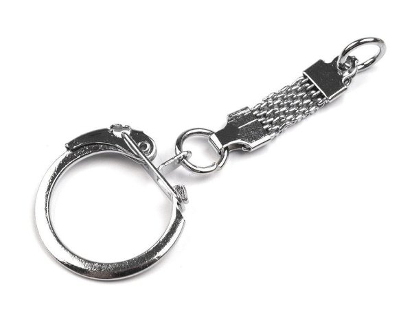 Prívesok na kľúče s karabínkou a pútkom. Dĺžka je 60 mm, okrúhla karabínka má priemer 20 mm. Prívesky sú vyrobené z bižutérneho kovu s galvanizáciou. Šírka otvoreného otvoru v karabíne je 6,5 mm.