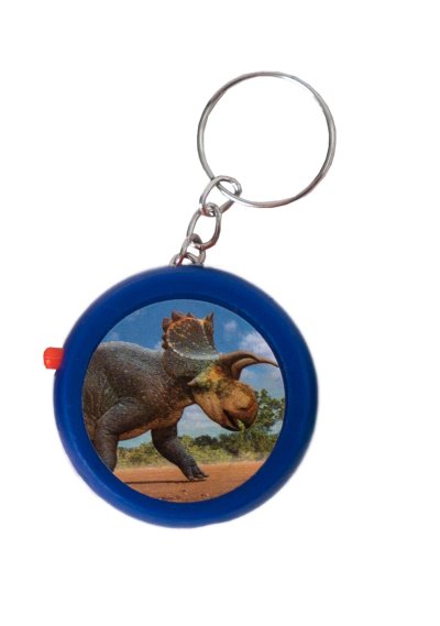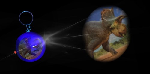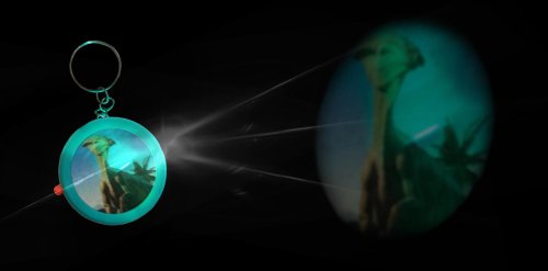 Projektor, ktorý každý milovník dinosaurov a svetielok môže nosiť vždy po ruke, ako kľúčenku. Stlačte tlačidlo na boku a celý sa rozvíti, na stenu Vám bude premietať obrázok jedného dinosaura. Veľkosť prívesku: 4 cm Rozmer balenia: 7 x 11 cm Vhodné pre deti od 3 rokov