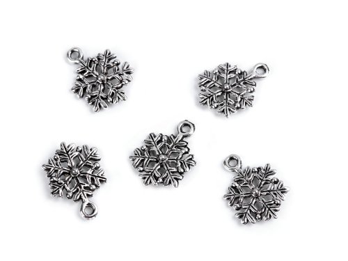 Malý kovový prívesok v tvare snehovej vločky je plochý, obojstranný.