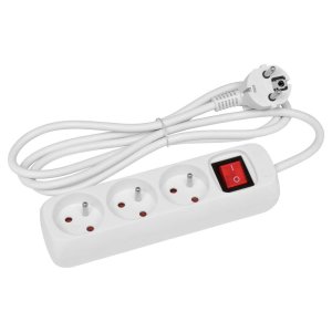 Štandardný predlžovací kábel bielej farby na vnútorné použitie. Je vybavený kolískovým vypínačom a detskými clonkami. Zásuvka a vidlica je vyrobená z plastu, izolácia z PVC.