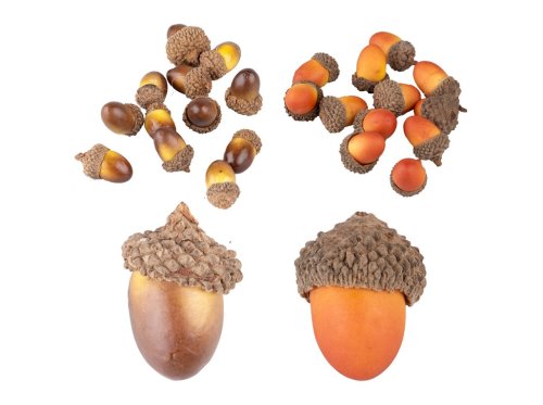 Dekoračné prízdoby v tvare žaluďov o veľkosti 40 mm, balenie obsahuje 12 kusov vo farebnom mixe. Sú ideálne pre jesenné a zimné aranžmány, vence, dekorácie stolov či kreatívne tvorenie. Ľahký materiál a realistický vzhľad dodajú vašim dekoráciám prírodný a hrejivý charakter. Dodávané ako farebný mix. Tovar je dodávaný v mixe. Doručovaný tovar je vyberaný náhodne a nie je možné vybrať konkrétne prevedenie.