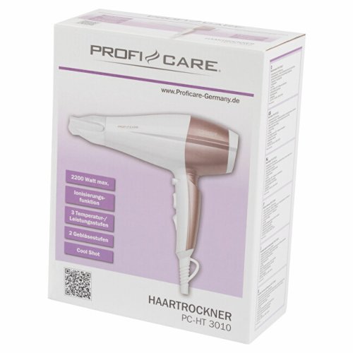 Fén HT 3010 je šetrný k vlasom a počas sušenia ich nepoškodzuje. Napriek tomu ich zvládne vysušiť rýchlo, a to vďaka výkonu 2 200 W. Výhodou je ionizačná funkcia na vytvorenie antistatického efektu a lesklý vzhľad vlasov. Fén je možné prevádzkovať v 3 teplotách a 2 rýchlostiach. Nesmie chýbať ani studený vzduch na finálne úpravy a štylovanie vlasov. Nasávaný vzduch prúdi cez odnímateľný vzduchový filter, takže všetky nečistoty sa v ňom zachytia. Súčasťou balenia je aj difuzér otočný o 360°. Závesné oko na rukoväti slúži na pohodlnejšie skladovanie. O bezpečnosť sa stará ochrana proti prehriatiu.