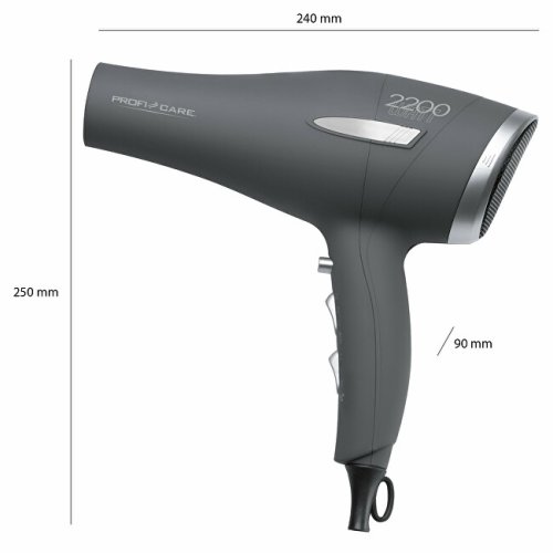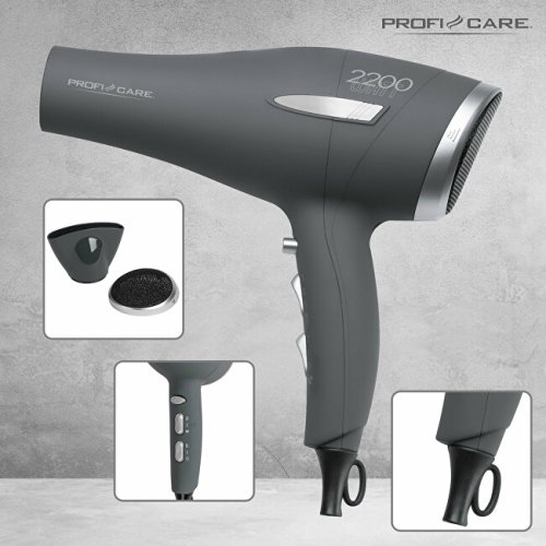 Profesionálny fén značky ProfiCare s výkonom až 2 200 W. Je možné nastaviť až 3 stupne výkonu/teploty a 2 stupne rýchlosti ventilátora + Cool Shot. Súčasťou balenia je tvarovaná tryska otočná o 360°, ktorá je odnímateľná. Puzdro fénu je vyrobené zo Soft Touch materiálu. Fén je vybavený filtrom prívodu vzduchu, ktorý je tiež odnímateľný av balení sú ďalšie 2 náhradné filtre. Je vybavený ochranou proti prehriatiu a závesným okom. Napájanie je 220-240 V, 50/60 Hz, výkon je 1 800-2 200 W.