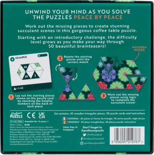 Uvoľnite svoju myseľ pri riešení hlavolamu Peace by Peace: Sukulenty. Úlohou tejto logickej stolovej hry je nájsť chýbajúce dieliky a vytvoriť tak obrázky sukulentov. Začínate úvodnou výzvou a obtiažnosť rastie s tým, ako prechádzate 50 nádhernými hlavolamami.