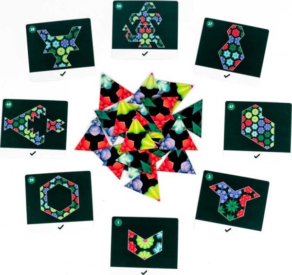 unikátny vzor rozvíja priestorovú orientáciu a sústredenie 45 drevených trojuholníkových dielikov 50 inštruktážnych kartičiek