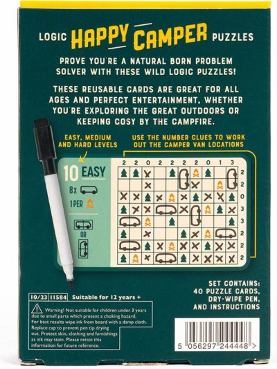 Dokážte, že ste rodený riešiteľ problémov s týmito divokými logickými hádankami! Tieto opakovane použiteľné karty sú skvelé pre všetky vekové kategórie a predstavujú dokonalú zábavu, či už skúmate prírodu, alebo si robíte pohodlie pri táboráku. Balenie obsahuje: 40 opakovane použiteľných kartičiek, mazateľné pero, návod.