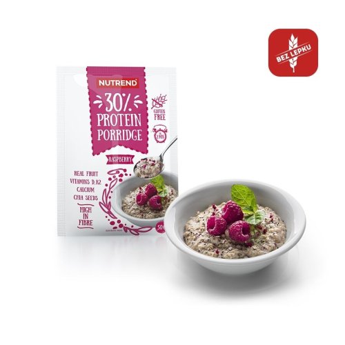 Lahodná proteínová ovsená kaša, ktorá obsahuje 30% mimoriadne kvalitné bielkoviny (mliečny proteínový izolát), je bohatá na vlákninu, bezlepková a ľahko stráviteľná. Tým však zoznam jej benefitov zďaleka nekončí - obsahuje vápnik, vitamín K aj tak potrebný vitamín D. Stačí iba zaliať vodou a za 2 minúty je kaša hotová. Proteínová ovsená kaša sa stáva jednou z najobľúbenejších možností rýchlo pripravených raňajok, ale aj vyhľadávanou formou desiaty v priebehu dňa. Vhodná kombinácia živín vás nielen nasýti, ale dodá vhodný pomer všetkých živín. Proteín Porridge od spoločnosti Nutrend je bohatá na vlákninu a obsahuje výhradne bezlepkové suroviny, vďaka ktorým je ľahko stráviteľná. Vďaka tejto kaši dodáte svojmu telu veľké množstvo bielkoviny, ktorej zdrojom je vysoko kvalitný mliečny proteín (izolát). PROTEIN PORRIDGE od spoločnosti Nutrend je ďalej bohatá na chia semienka a dodá vášmu telu unikátnu zmes vitamínov a minerálov, medzi ktorými nájdete najmä vitamín D a vitamín K, a ďalej tiež vysoké množstvo vápnika. - 30% bielkoviny (mliečny proteínový izolát) - dostatočné množstvo bielkoviny prispieva k syntéze a udržiavaniu svalovej hmoty - bez lepku - Vitamín D - prispieva k udržaniu normálnych kostí a zubov, prispieva k absorpcii vápnika a fosforu, prispieva - prispieva k normálnej zrážanlivosti krvi, prispieva k udržaniu normálnych kostí - Vápnik - potrebný pre normálny rast a vývoj kostí a zubov, prispieva k normálnej svalovej funkcii Odporúčané dávkovanie: Dávka 50 g je vhodná ako raňajky alebo olovrant v dopoludňajších aj popoludňajších hodinách, vždy s odstupom minimálne 90 minút od ďalšej bežnej stravy. Možno užiť aj po fyzickej aktivite. Maximálne 2 dávky denne. Použitie: 50 g = jedna porcia. Obsah vrecka vysypte do vhodnej nádoby, zalejte 100 ml horúcej (nie vriacej) vody a rozmiešajte. Možno použiť aj studenú vodu. Po otvorení vrecka je výrobok určený na okamžitú spotrebu. Upozornenie: Proteínová kaša obohatená o vitamíny. Nie je určené pre deti do 3 rokov. Ukladajte mimo dosahu detí. Skladujte v suchu pri teplote do 25 ° C mimo dosahu priameho slnečného žiarenia. Chráňte pred mrazom. Výrobca neručí za prípadné škody vzniknuté nevhodným použitím alebo skladovaním. Príchuť malina: bezlepkové ovsené vločky 33,5 %, izolát mliečnych bielkovín, trstinový cukor, pohánková kaša 5 %, chia semienka (Salvia hispanica) 5 %, inulín, ryžová múka, fruktóza, lyofilizované maliny 2 , regulátor kyslosti kyselina citrónová, chlorid sodný, protispekavé látky fosforečnan vápenatý a oxid kremičitý, menachinón - 7 (vitamín K2), cholekalciferol (vitamín D). Môže obsahovať stopy sóje. Príchuť čokoláda: bezlepkové ovsené vločky 32 %, izolát mliečnych bielkovín, trstinový cukor, pohánková kaša 5 %, chia semienka (Salvia hispanica) 5 %, inulín, ryžová múka, fruktóza, horké čokoládové kúsky 2 kakaové maslo, emulgátor slnečnicový lecitín), kakao, akáciová guma, aróma, chlorid sodný, protispekavé látky fosforečnan vápenatý a oxid kremičitý, menachinón - 7 (vitamín K2), cholekalciferol (vitamín D). Môže obsahovať stopy sóje.