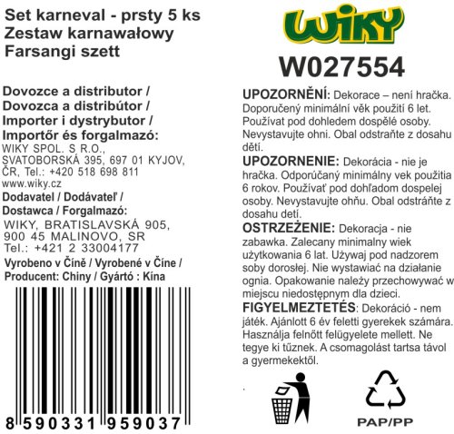 Čarodejnícke prsty sú skvelým doplnkom ku kostýmu čarodejnice! 5ks v sáčku. Rozmery balenia 11 x 12 x 2 cm.