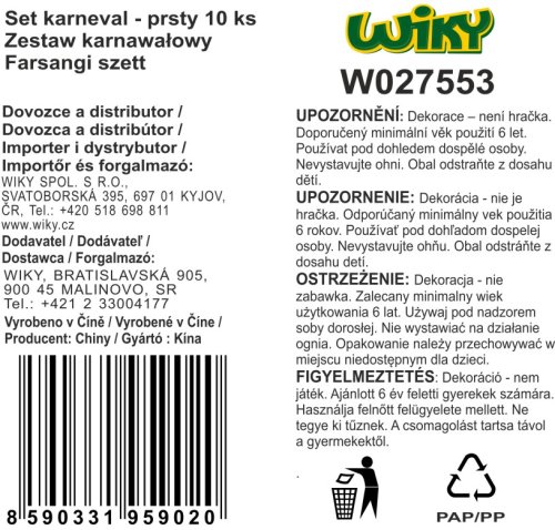 Čarodejnícke prsty s červenými pazúrmi nesmú chýbať žiadnej čarodejnici ako doplnok ku karnevalovému prevleku. V balení je 10 ks. Nie je hračka
