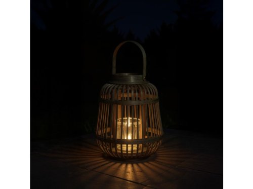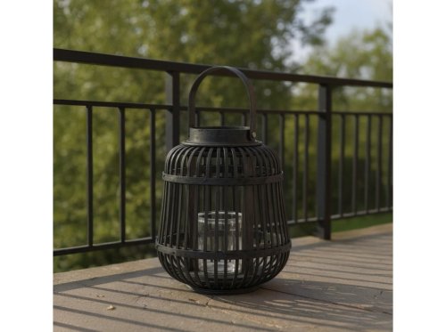 Táto prútená lampa s uchom a vnútornou sklenenou vložkou na sviečku je dokonalým doplnkom na záhradu, terasu aj do interiéru. V prírodnej zelenej farbe a veľkosti 19 × 24 cm prináša útulný rustikálny vzhľad. Vložte dovnútra sviečku a nechajte jemné svetlo prežiariť váš večer. Vďaka madlu sa ľahko prenáša aj zavesuje.