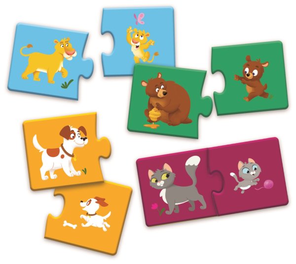 Vzdelávacia skladačka pre deti. Zvieratá sú vzdelávacia skladačka, ktorá vašim deťom priateľským spôsobom predstavuje svet zvierat. Malí hráči objavujú, ako vyzerajú zvieracie mamičky a ich deti a pritom sa veselo bavia so skladačkou.