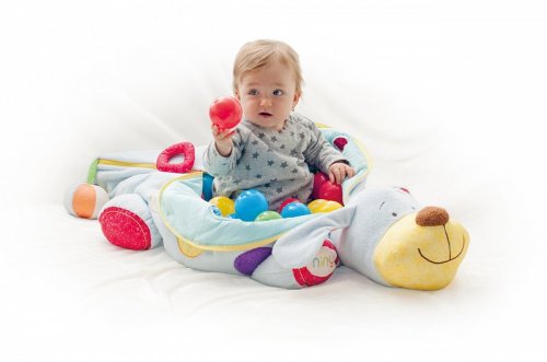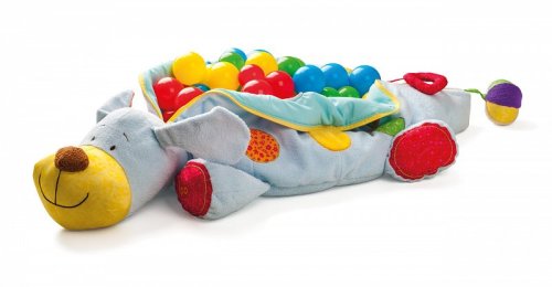 Veľký plyšový kamarát psík IPO so 60 loptičkami je upokojujúca hračka z kolekcie Niny. V jeho tele je uložených 60 farebných plastových loptičiek. Chvostík je vyrobený z látkovej loptičky, ktorá vydáva zvonivý zvuk. Na tele psíka sú hracie prvky, prestrkávacie okienka a zrkadlo. Ouška šuštia. Všetky použité materiály sú príjemné na dotyk a ponúkajú deťom ničím nerušený čas relaxácie. Dizajn nemeckej návrhárky Britty Hurter.