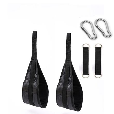 Závesné popruhy Merco Pull-Up Straps sú jednoduchou fitness pomôckou, s ktorou posilníte brušné svaly a stred tela. Súprava obsahuje 2 široké pásy na ruky, 2 oceľové karabíny a 2 popruhy s oceľovými okami, ktoré slúžia na zavesenie na hrazdu či tyč pri posilňovacej veži. Súprava je vyrobená z odolnej oxford textílie a jej maximálna nosnosť je do 100 kg. Závesný systém Pull Up Straps je jednoduchá pomôcka do každej domácej posilňovne. - 2 pásy na ruky: 29 x 20 cm (dĺžka x šírka) - 2 popruhy: 26 x 4 cm (dĺžka x šírka) - 2 oceľové karabíny, dĺžka 8 cm - materiál: oxford tkanina, oceľ - max. zaťaženie: 100 kg - pre domáce fitness