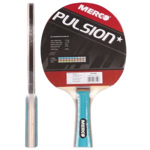 Pingpongová raketa Merco Pulsion* je určená predovšetkým pre začínajúcich hráčov a rekreačných hráčov, ktorí si s jej pomocou osvoja základné údery a techniku. Svojou cenou je tiež vhodnou voľbou pre školy. Rakety sú vyrobené z materiálov - 5-vrstvové drevo, PU pena a guma - ktoré zaručujú dobrú odolnosť a životnosť. Parametre pálky: Rýchlosť 7/10, Kontrola 9/10, Rotácia 6/10. Drevená konkávna rukoväť zaručuje veľmi dobrý grip. Dĺžka rukoväte 100 mm, šírka rukoväte 33 mm, hrúbka hlavy 11,5 mm, plášť 2,1 mm, huba 1,2 mm. Hmotnosť pálky je 175 g.