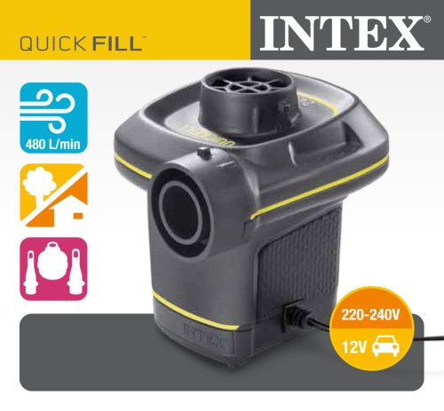 Elektrický ventilátor na nafukovanie a vyfukovanie člnov, matracov, lehátok a nafukovacích hračiek. Adaptér pre napájanie z el. siete 230 V. Zástrčka pre napájanie z autozásuvky 12 V. Kapacita 250 l/min. 3 redukcie pre rôzne rozmery ventilov Výrobca odporúča používať max. 10 minút, potom je treba nechať prístroj vychladnúť. Prístroj nie je vhodný na nafukovanie pneumatík, športových lôpt, apod.