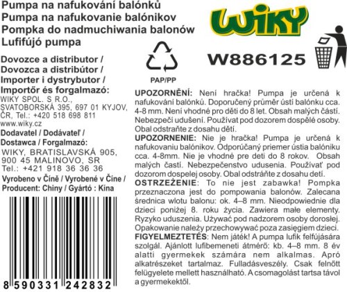 Farebná pumpička na balónik Rozmery: dĺžka 30 cm priemer pumpy 5 cm priemer náustku 0,7-3 cm