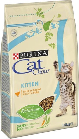 Poskytnite svojmu mačiatku s touto receptúrou všetky živiny, ktoré potrebuje na to, aby z neho vyrástla úžasná mačka. Obsahuje DHA, zložku, ktorá sa prirodzene vyskytuje v materskom mlieku au mačiatka podporuje rozvoj mozgu a zraku. Už od roku 1926 odborníci spoločnosti PURINA spájajú porozumenie prirodzeným požiadavkám zvierat s prípravou správnej výživy, aby mohli prispieť k ich celkovému zdraviu a pohode. Naša receptúra s vysokým podielom morky a špecificky vybranými kvalitnými zdrojmi bielkovín uspokojí prirodzené potreby mačky. Starostlivo pripravené krmivo s prírodnými zložkami (petržlen, špenát, mrkva, celozrnné obilniny, čakanka a kvasnice) v chutnej receptúre mačky spontánne preferujú. PURINA CAT CHOW NaturiumTM je receptúra so špecifickou kombináciou vlákniny z prírodných zdrojov. Obsahuje prírodné zdroje prebiotík, ktoré preukázateľne zlepšujú rovnováhu črevnej mikroflóry a podporujú zdravie tráviaceho traktu, aby mačka mohla získať zo svojej stravy čo najviac. Vitamín E podporuje prirodzenú obranyschopnosť mačky a vitamíny skupiny B jej pomáhajú účinne využívať energiu. Zloženie: mäso a živočíšne produkty (33 % **), obilniny (32 % celozrnné ), bielkovinové extrakty, oleje a tuky, vedľajšie produkty rastlinného pôvodu (2,7 % sušená repná dužina, 0,07 % sušená petržlen zodpovedajúca 0,4 % petržlenu ), zelenina* (2 % sušený koreň čakanky, 0,07 % sušená mrkva zodpovedajúca 0,4 % mrkvy, 0,07 % sušený špenát zodpovedajúci 0,4 % špenátu), minerálne látky, kvasnice* (0,3 % ).
