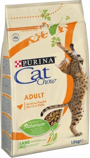 Kompletná a vyvážená výživa s vysokým podielom kurčaťa poskytne vašej mačke všetko, čo potrebuje pre svoj úžasný život. Už od roku 1926 odborníci spoločnosti PURINA spájajú porozumenie prirodzeným požiadavkám zvierat s prípravou správnej výživy, aby mohli prispieť k ich celkovému zdraviu a pohode. Naša receptúra s vysokým podielom morky a špecificky vybranými kvalitnými zdrojmi bielkovín uspokojí prirodzené potreby mačky. Starostlivo pripravené krmivo s prírodnými zložkami (petržlen, špenát, mrkva, celozrnné obilniny, čakanka a kvasnice) v chutnej receptúre mačky spontánne preferujú. PURINA CAT CHOW NaturiumTM je receptúra so špecifickou kombináciou vlákniny z prírodných zdrojov. Obsahuje prírodné zdroje prebiotík, ktoré preukázateľne zlepšujú rovnováhu črevnej mikroflóry a podporujú zdravie tráviaceho traktu, aby mačka mohla získať zo svojej strany čo najviac. Vitamín E podporuje prirodzenú obranyschopnosť mačky a vitamíny skupiny B jej pomáhajú účinne využívať energiu. Starostlivo pripravená receptúra: NEOBSAHUJE pridané umelé dochucovadlá NEOBSAHUJE pridané farbivá NEOBSAHUJE pridané umelé konzervačné látky Zloženie: obilniny (45% celozrnné ), mäso a živočíšne produkty (20% **), bielkovinové extrakty rastlinného pôvodu 2,7 % sušená repná dužina, 0,07 % sušená petržlen zodpovedajúca 0,4 % petržlenu ), zelenina* (2 % sušený koreň čakanky, 0,07 % sušená mrkva zodpovedajúca 0,4 % mrkvy, 0,07 % sušený špenát zodpovedajúce 0,4 % špenátu), minerálne látky, kvasnice* (0,3 %).