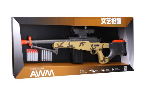 Puška ostreľovacia na penové náboje set. Rozmery zbrane 87x5x22 cm. Obsah balenia - puška, pás cez rameno, bezpečnostné okuliare, zásobník na 5 nábojov, 12 penových nábojov. Pušku je možné rozložiť na menšie časti (schéma na zostavenie na obale). Manuálne nabíjanie po každom výstrele, streľba spúšťa.