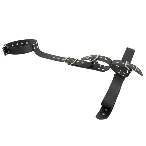 Pútací set s obojkom okolo krku a pásom cez boky je 100% vegánsky bez použitia živočíšnych materiálov. Celý set je plne nastaviteľný pomocou kovových spôn.