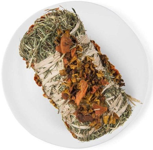 Witte Molen PUUR – skutočný pôžitok z rýdzich prírodných chutí a vôní. PUUR pauze hay roll vegetable je lahodná rolka zo sena, so zeleninou. 100% prírodná zábavná maškrta pre bylinožravé drobné cicavce. Králiky, morčatá, činčily a osmáci si nielen pochutnajú na voňavom sene, sušenej mrkve a tekvici, ale zároveň rozpletaním rolky zaženú nudu. Maškrta stimuluje prirodzený hlodací inštinkt a podporuje tak zdravie zubov. Navyše obsiahnutá hrubá vláknina prispieva k správnemu fungovaniu trávenia. Vyrobené v Holandsku v spoločnosti Witte Molen s tradíciou od roku 1740. Zloženie: Vedľajšie produkty rastlinného pôvodu (90 % seno), zelenina (5 % mrkva, 5 % tekvica).