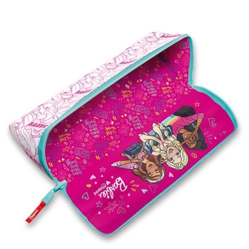 Univerzálne obojstranné púzdro Maped Open XXL Fancy Barbie nielen na písacie potreby s uzatváraním za zips, trojuholníkový tvar.