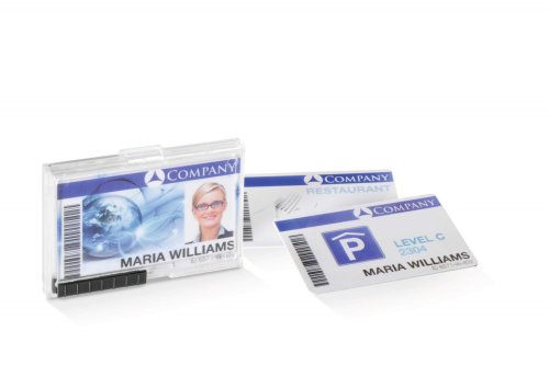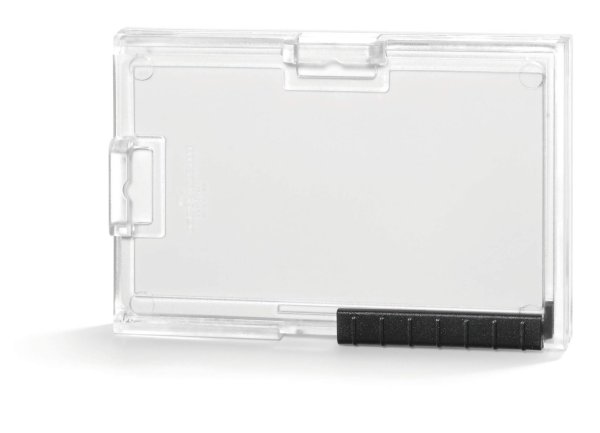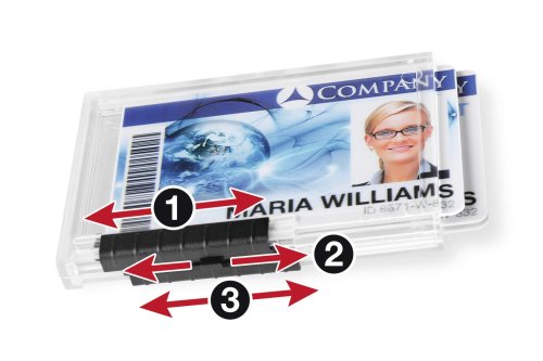 Držiak kariet na 3 karty Samostatné komory chránia napr. karty s magnetickými prúžkami pred poškodením Jednoduché vyberanie kariet pomocou samostatných posuvníkov Číry plast pre dobrú čitateľnosť Upevňovací držiak …