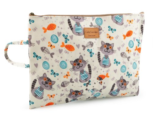 Veľké púzdro z nepremokavého materiálu je veľmi kvalitné a atraktívne. Má krásne spracované detaily ako je semišový štítok hand made na prednej strane a kovový prívesok medvedíka na zipse. Puzdro je ploché, hodí sa na skicáky, bloky, zošity, školské potreby, výkresy, dá sa do neho uložiť laptop a tablet. Presne sa do neho zmestí veľkosť formátu A4 - 210 x 297 mm. Vnútri má puzdro podšívku, ktorá má tiež pútavý potlač. Zapína sa na zips, jeho súčasťou je pútko na zavesenie.