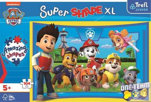 Puzzle s motívom obľúbených hrdinov z Tlapkovej Patroly. Puzzle obsahujú 104 veľkých dielikov neobvyklých tvarov, ktoré určite zabavia každého milovníka Rydera a jeho psieho záchranárskeho tímu. Rozmer zloženého obrázku: 60 x 40 cm Rozmer krabice: 40 x 27 x 6 cm Vhodné od 5 rokov