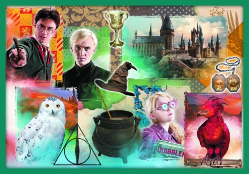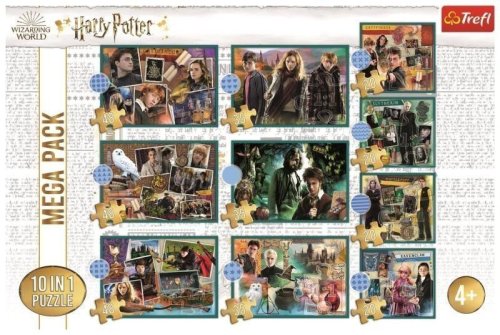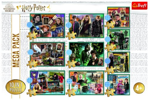 Mega Pack detských puzzle s motívom kúzelného sveta Harryho Pottera od výrobcu Trefl. Balenie obsahuje: štyri puzzle s 20 dielikmi, tri puzzle s 35 dielikmi a tri puzzle s 48 dielikmi. Vďaka rôznej potlači zo zadnej strany (kolieska, hviezdičky, srdiečka, ...), je možné jednotlivé obrázky od seba veľmi ľahko odlíšiť. Rozmer zloženého puzzle cca 4x (16,7 x 15,6 cm), 6x (22,3 x 15,6 cm)