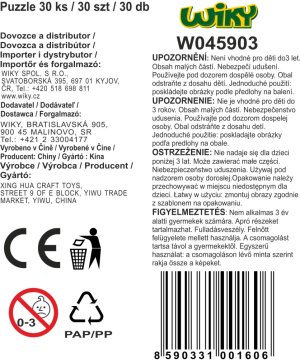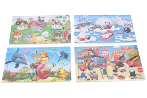 Puzzle o veľkosti 22,5 x14, 5 cm, 30 ks. 12 rôznych motívov.