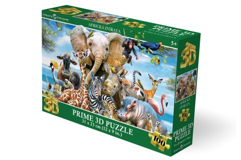 3D puzzle s motívom afrických zvierat. Balenie obsahuje 100 dielikov. Rozmery balenia 23x15x5 cm. Rozmery zloženého obrázku 31x23 cm. Vek 5+