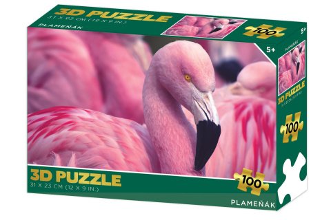 3D puzzle s motívom plameniaka. Balenie obsahuje 100 dielikov. Rozmery balenia 23x15x5 cm. Rozmery zloženého obrázku 31x23 cm. Vek 5+