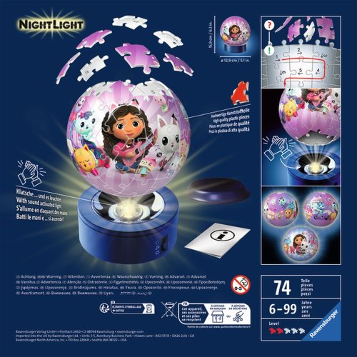 Postavte si svoj svietiaci 3D puzzle-ball z nočnej edície s motívom Gabby's Dollhouse z plastových dielikov technológie EasyClick.