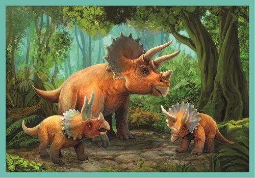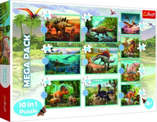 Puzzle s motívom obľúbených dinosaurov. Desiatich samostatných puzzle s rôznym počtom dielikov – 4x20, 3x35, 3x48 – postupne vedú k zdokonaľovaniu dieťaťa pri skladaní a zvyšovaní obtiažnosti. Veľkosť zloženého obrázku (4x20 dielikov) je 16,7 x 15,6 cm, veľkosť zloženého obrázku (3x35 a 3x48 dielikov) je 22,3 x 15,6 cm. Rozmery balenia 40 x 27 x 6 cm Vhodné pre deti od 4 rokov