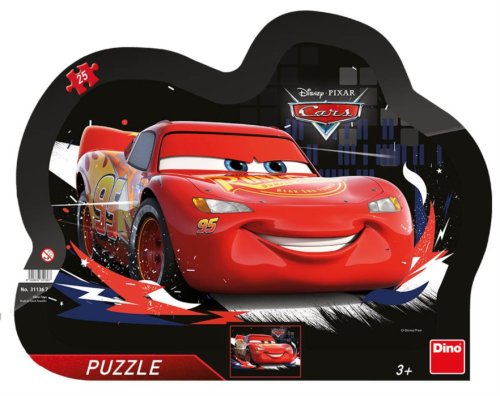 Detské obrysové doskové puzzle (dieliky sa skladajú priamo na priloženú podložku s rámčekom) s motívom filmu Autá. Rozmer zloženého puzzle cca 30 x 23 cm