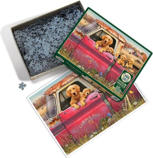 Raznica puzzle COBBLE HILL nekopíruje štandardnú mriežku, rohy a hrany dielikov nie sú vždy v jednej osi a dieliky majú neobvyklý tvar. Obtiažnosť puzzle je tak vyššia ako pri klasickej mriežkovej raznici, ktorú používajú poprední výrobcovia v Európe. Súčasťou balenia je aj predloha o veľkosti 31,6 x 22,9 cm. Rozmer zloženého puzzle cca 67,6 x 48,9 cm