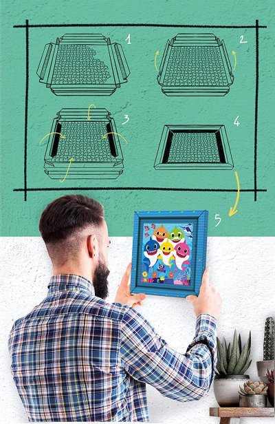 Puzzle s obľúbeným motívom Baby Shark je zo špeciálnej edície Frame Me Up, ktoré si môžete pohodlne, hneď po zložení zarámovať. Nie je potrebné dokupovať rámček, pretože je súčasťou balenia. Preložte lepenkový rám v niekoľkých jednoduchých krokoch a zafixujte puzzle bez lepidla. Kvalita materiálov a exkluzívna technika tlače zaručujú trvalo krásne, živé a žiarivé farby. Rozmer zloženého puzzle cca: 27 x 27 cm. Rozmer balenia: 29,7 x 29,7 x 5,3 cm. Počet dielikov 60. Vek: 6+