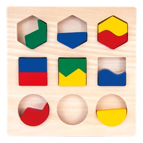 Drevená farebná skladačka pre deti, ktoré sa zoznamujú s geometrickými tvarmi. Skvelé na cvičenie predstavivosti a schopnosti kombinovať.