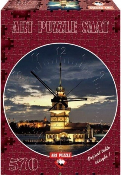 Originálne spojenie puzzle a hodín! Poskladajte si puzzle obrázok istambulskej veže a poskladaný motív premeňte na funkčné hodiny. Balenie obsahuje: - okrúhle puzzle o 570 dielikoch - vrecko s lepidlom na puzzle - okrúhlu podkladovú dosku - hodinový strojček s príslušenstvom Na prevádzku hodinového strojčeka je treba 1 ks 1,5 V batérie AA (nie je súčasťou balenia). Návod: Na poskladané puzzle rovnomerne naneste polovicu lepidla (súčasťou balenia). Nechce približne 60 minút zaschnúť. Následne aplikujte zostávajúce lepidlo na priloženú podložku a poskladaný motív prilepte. Pre lepší výsledok odporúčame po prilepení puzzle k podkladovej doske zaťažiť a počkať na zaschnutie. Po zaschnutí pripevnite hodinový strojček podľa obrázkového návodu na krabici. Rozmer zloženého puzzle cca priemer 46 cm