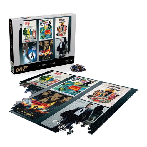 Fanúšikové puzzle pre priaznivcov britského agenta Jamesa Bonda. Znovu zažite slávnu kariéru 007. Motív sa skladá zo 6 klasických filmových plagátov hereckých debutov predstaviteľov Bonda. Obsahuje 1000 dielikov. Oficiálny licenčný produkt.