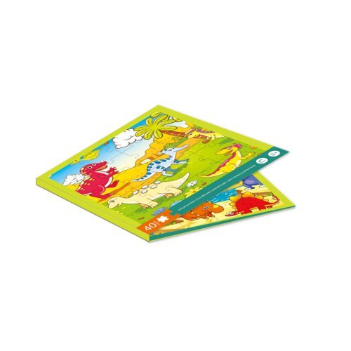 Magnetické puzzle s motívmi dinosaurov. V tejto magnetickej knižočke nájdete dva rôzne obrazce na poskladanie, každý z nich má 20 dielikov. Jednotlivé dieliky sú dostatočne veľké pre ľahký úchop a na magnetické časti skvele držia.