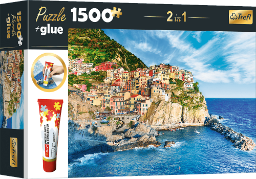 Súprava 2v1: puzzle + lepidlo. Tekuté lepidlo na vodnej báze s aplikátorom trvalo zlepí až štyri tisíc poskladaných dielikov puzzle. Nanáša sa priamo na obrázok penovou hubkou, ktorá je umiestnená pod uzáverom (uzáver je nutné sňať, nie odskrutkovať). Lepidlo vystačí orientačne na 1,5 m², čo zodpovedá 4000 dielikov. Objem 70 ml. Návod na použitie lepidla: Položte puzzle na rovný a pevný povrch. Pritlačte hubku na hornú (obrázkovú) stranu zloženého puzzle a bez toho, aby ste ju zdvíhali, rovnomerne nanášajte lepidlo na celú plochu. Aplikátor po použití opláchnite vodou a puzzle nechajte zaschnúť. Rozmer zloženého puzzle cca 85 x 58 cm