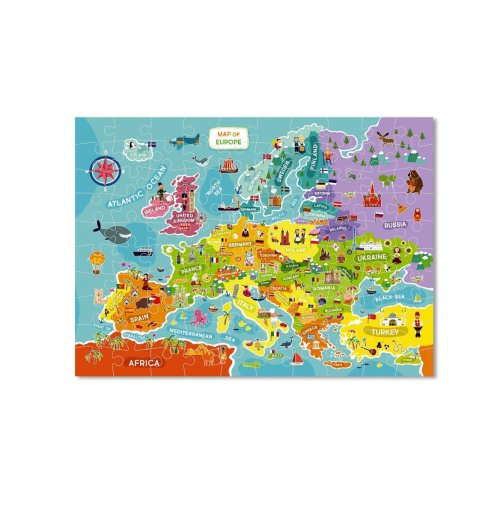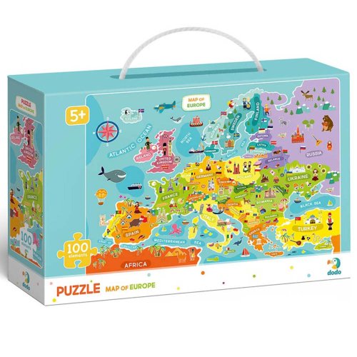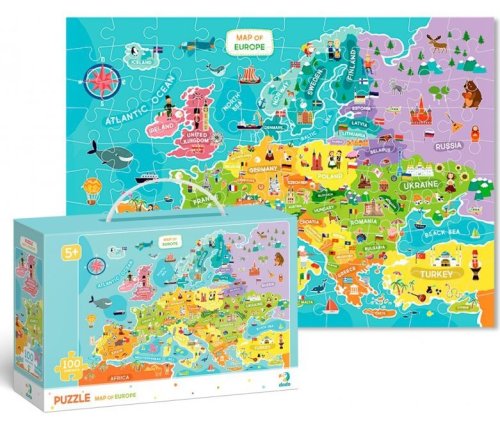 Vzdelávacie puzzle, ktoré obsahuje farebnú mapu Európy. Puzzle obsahuje 100 dielikov a je navrhnuté tak, aby bolo zábavné aj vzdelávacie, s farebnými vzormi, ktoré napomáhajú rozvoju dieťaťa. Veľkosť zloženého obrázku: 64 x 46 cm Rozmer balenia: 28 x 18,5 x 6,5 cm Vhodné pre deti od 5 rokov.