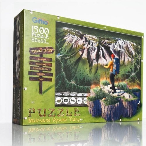 Krásne maľované puzzle Mapa Vysokých Tatier v darčekovej krabičke s plagátom mapy zadarmo.