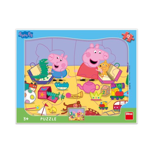 Detské doskové puzzle s 12 tvarovými dielikmi v ráme s motívom Peppa Pig.