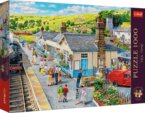 Kvalitné puzzle nadchne nielen fanúšikov týchto skladačiek. Krásny motív znázorňuje Čajový čas: Vlaková stanica. Puzzle sa skladá z 1000 dielikov. Veľkosť zloženého obrázku je 68,3 x 48 cm. Precvičujte svoju pozornosť, ale aj trpezlivosť. Rozmery výrobku 40 x 27 x 6 cm Vhodné pre deti od 12 rokov