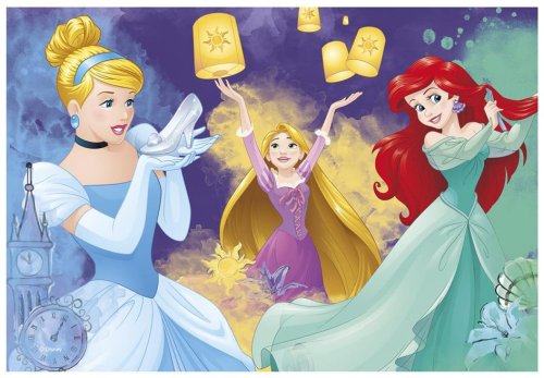 Dve puzzle s motívom Disney princezien. Rozmer zloženého puzzle cca 26 x 18 cm